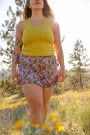 We know skorts, and we know prints, and that combo is mm mmm good. We think solid shorts are boring, so we put our favorite print on them. This skort turns 10 this year, so we updated it with a higher rise because we all like to age well. Two big pockets and a comfy inner thigh gusset make this skort the perfect companion for anything from a trail run to a talent show.